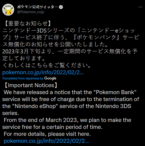 Update: The Pokémon company has responded to the departure of eShop purchases by offering Pokémon bank free for a limited amount of time after March 2023. You will need to have previously downloaded Pokémon bank before March 2023 to access the service. https://www.pokemon.co.jp/info/2022/02/220216_gm01.html