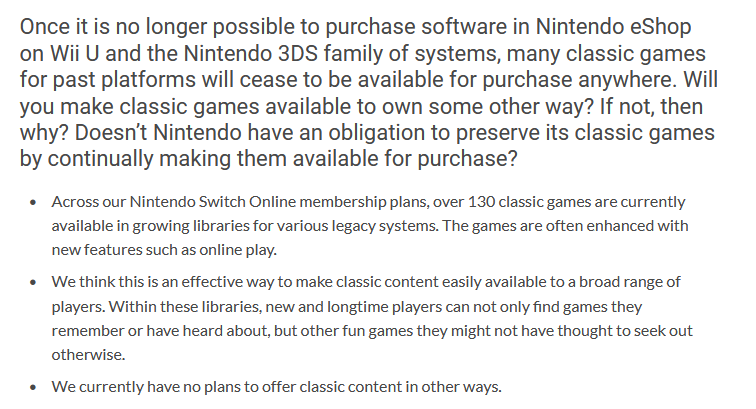 Funny side-note. Nintendo also removed a chunk of text from their support article about archival of old games.