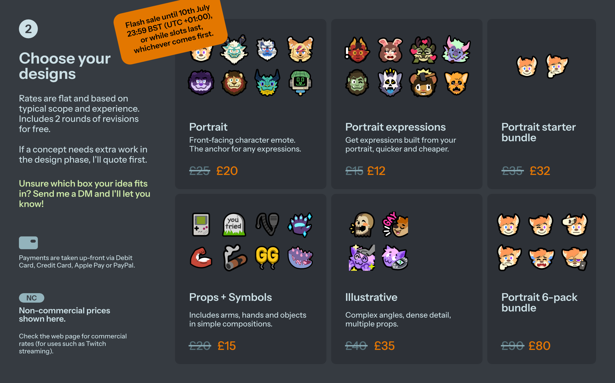 I'm running a flash sale on my emoji/emote/sticker commissions to raise money for internet, meds and overdue rent.