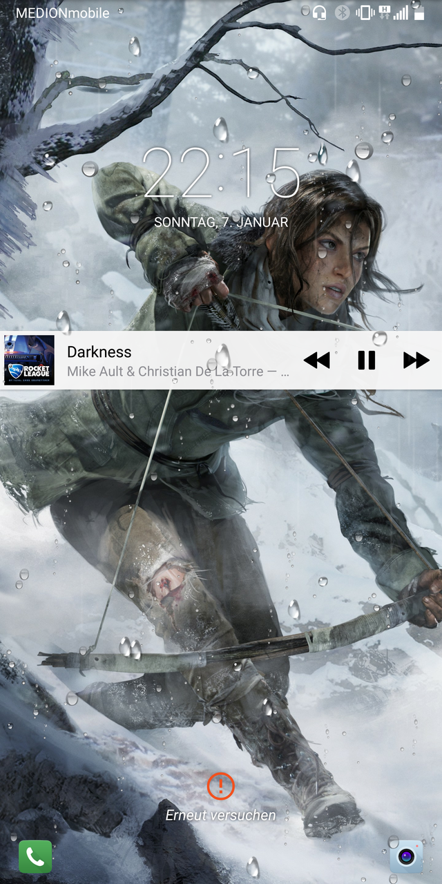 The LG lockscreen includes the feature to display a rain or snow forecast by showing a really tacky overlay animation.