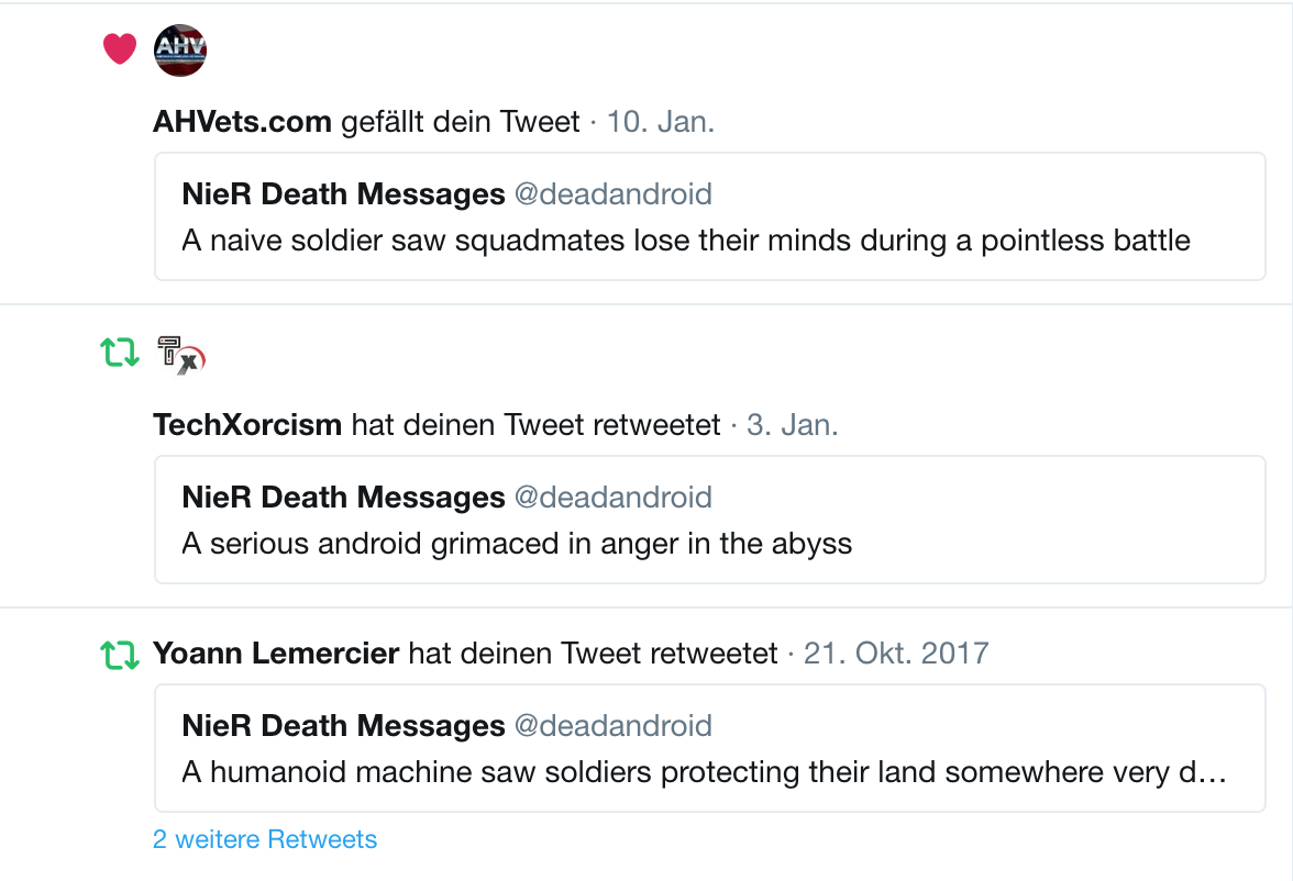 lol my nier bot is getting retweeted by tech and army bots https://awoo.space/media/9v4tzrReAWHtp_iHZ3s