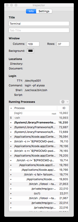 TIL you can hit ⌘I in macOS Terminal and get a handy tree of processes for the current tab. You can even select and kill them from it!