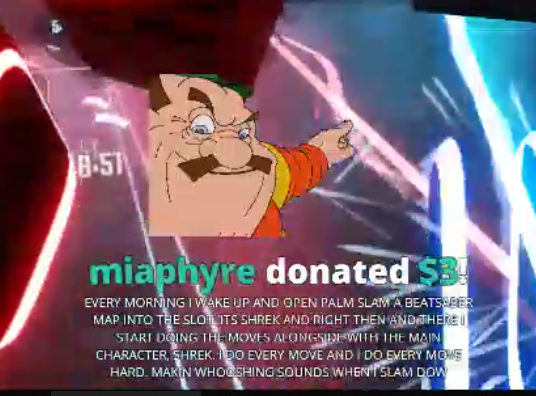 https://www.twitch.tv/wayneradiotv jesus christ this guy is playing a beatsaber map based on the ENTIRE audio track from shrek