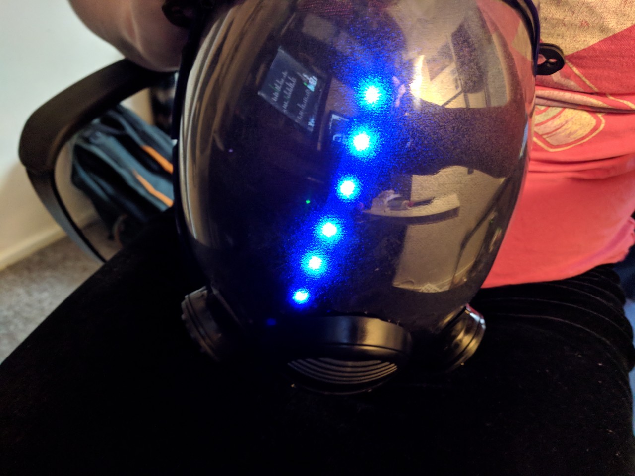 The speaker-front fabric I'm using actually diffuses kind of nicely. Neopixels will run less brightly and more controllably and may even be able to illuminate the whole faceplate more or less evenly with careful positioning.