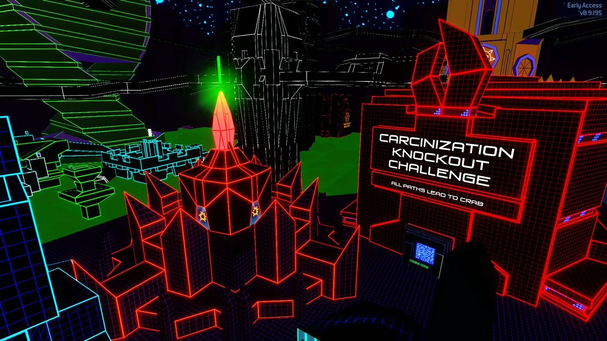 It may have been sleep deprivation but I added a Carcinization arena where you fight a giant crab in a boxing ring. Find out if crabs really are the ultimate evolution. https://store.steampowered.com/app/311800/Black_Ice