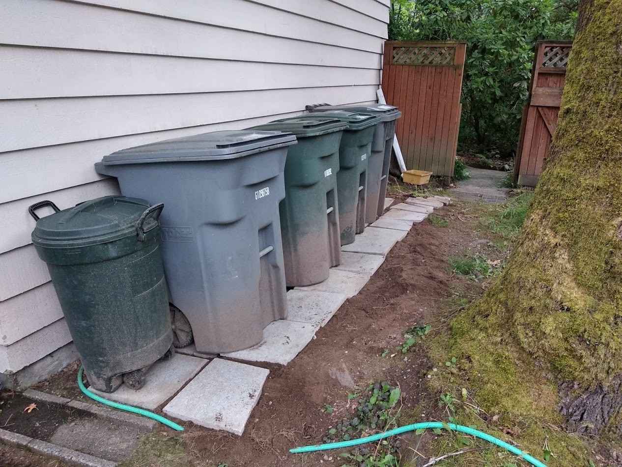 Our lesbian neighbors were going to throw out these nice paver stones, so @kelseyhusky and I picked them up and made a mini project of putting them down on the side of our house so the place we put our waste bins might be a little less muddy when it rains. ![]()