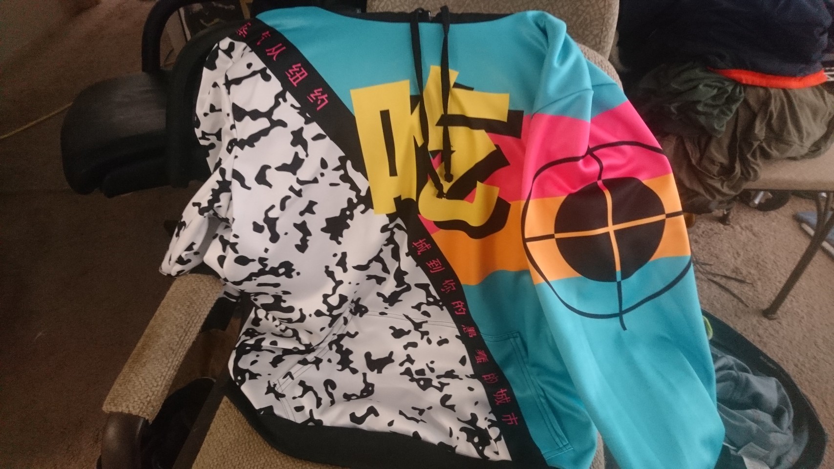 @Cerulean Oh, I have no idea. I just liked the colors. I spent about 2 hours trying to identify it from a kanji and hiragana lookup but the problem is it's actually very difficult to do that because it's in a more pop-art character style and most dictionaries are bad with those.