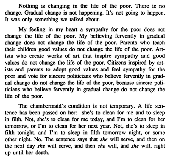 Whenever people try to talk about 'slow progressivism' as though the mainstream left hasn't been creeping steadily rightwards for my whole life, I think a lot about Wallace Shawn's 'The Fever':