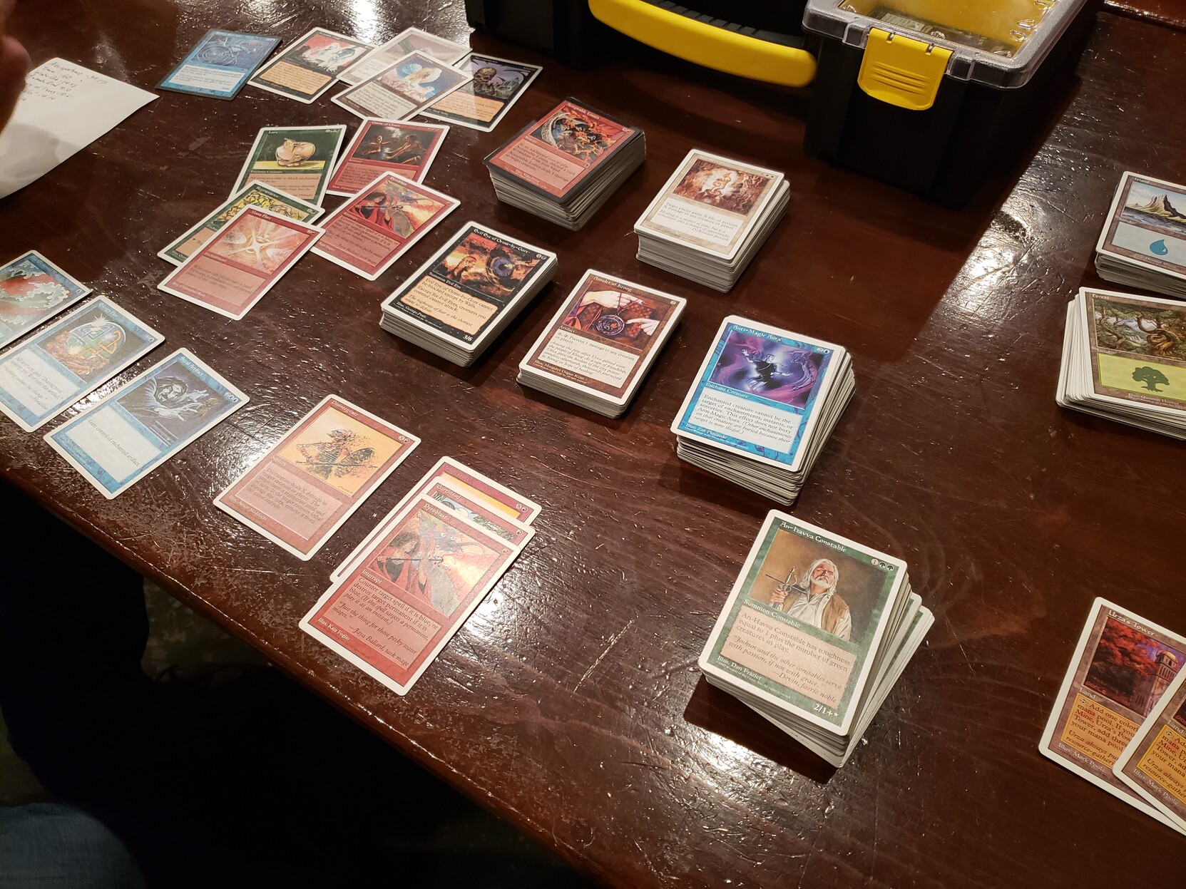 I found Magic, X-Files, L5R, Rage, NetRunner, and Warlord cards, plus a few other bits... heh... TombRaider as a card game... what were we thinking???