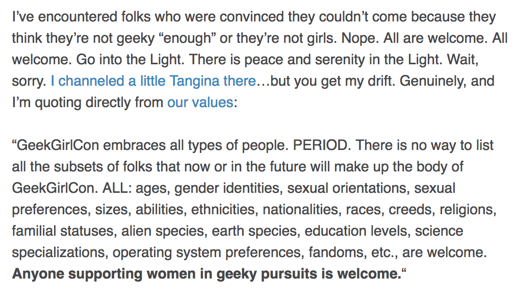 So there's no pressure to come join us, but PLEASE don't worry about being unwelcome. You're exactly the sort of person they want: someone who wants a kinder, gentler, more woman-friendly fandom. <3
