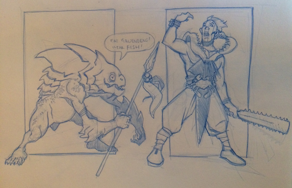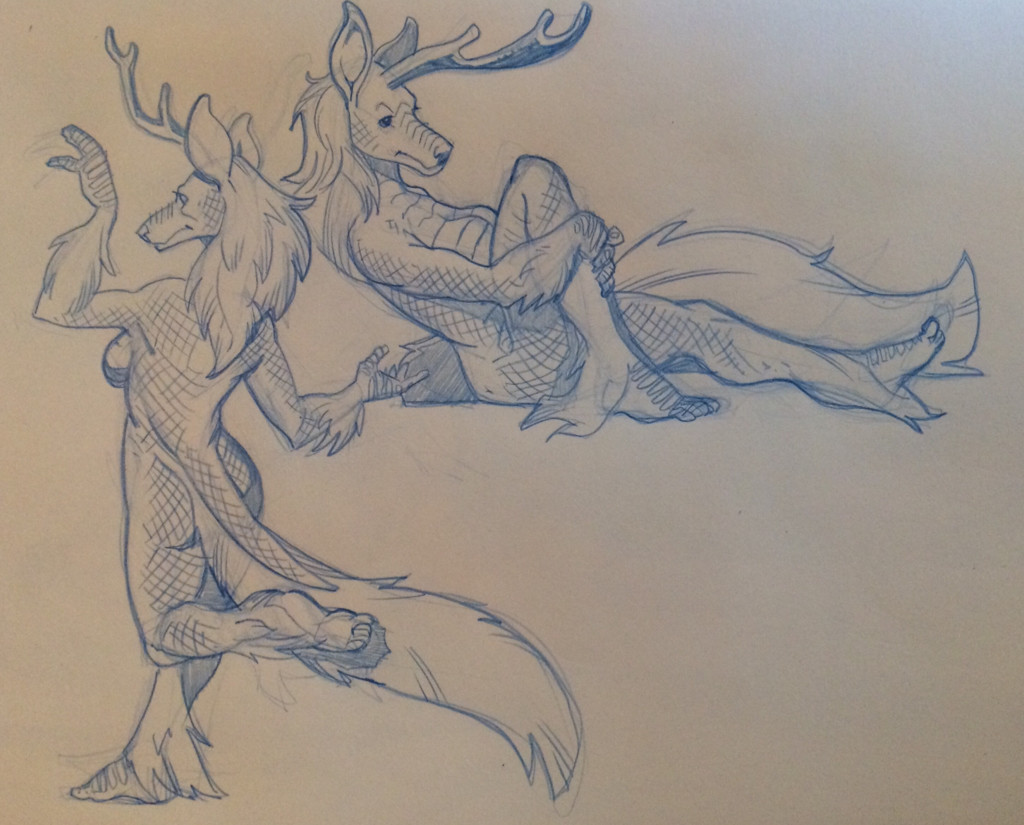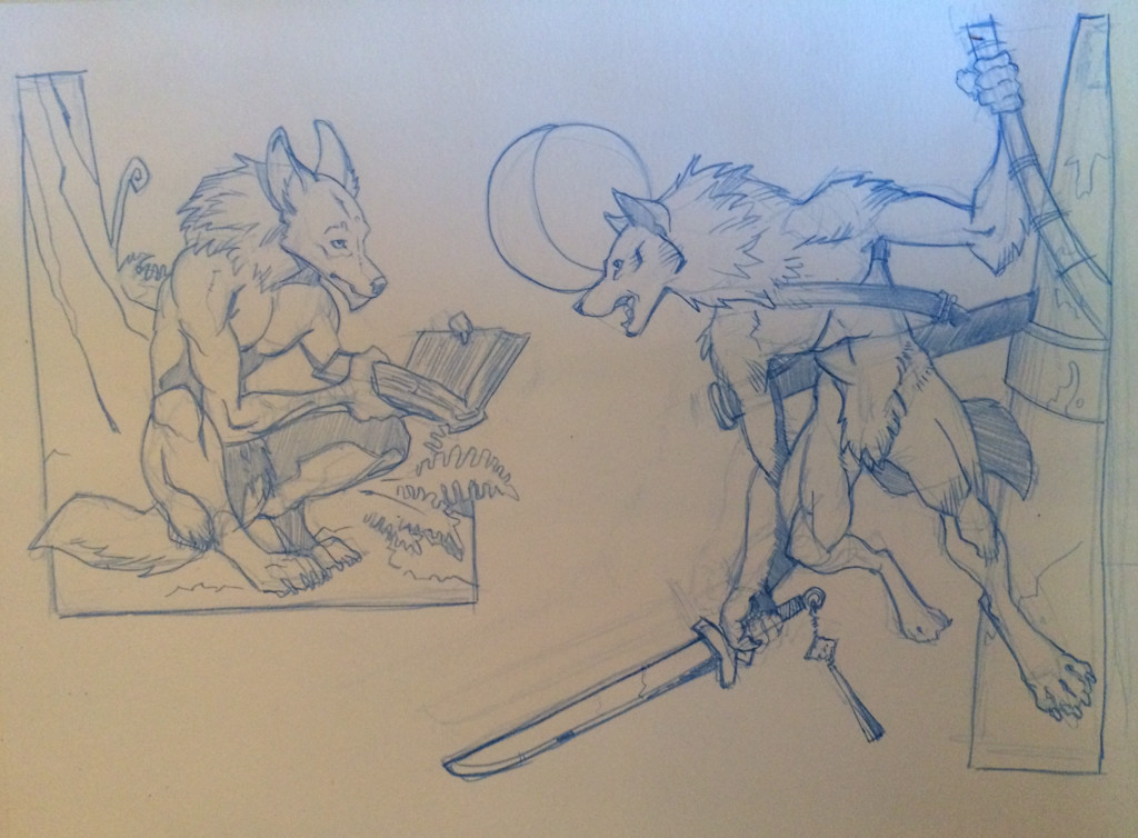 @zetasyanthis Thank you! It's really hard to get a good fix on time for these sketches specifically. The aquatic stuff and qilin were two of four pages of stuff which got roughed out and tightened up a little bit over 2 1/4 hours yesterday; drawing the werewolves, and tightening up all of these sketches to this point was something like 1 1/2-2 hours today.